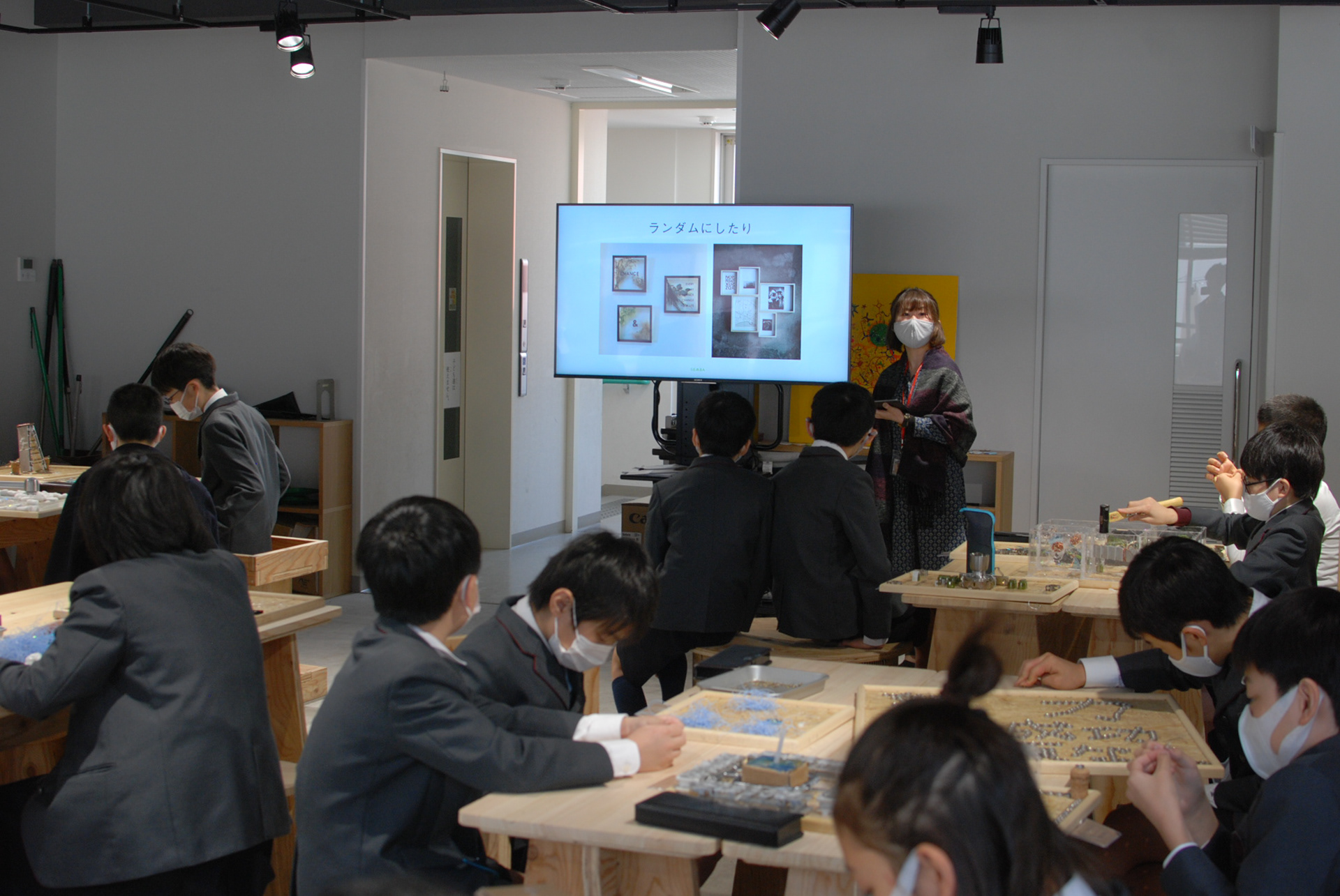 子ども達はモノの循環、ゴミ問題、SDGs、ディスプレイデザインをプロから学びながら、アイデア発想、アートボード制作、ディスプレイなどを試行錯誤しながら進めました。株式会社モノファクトリーが提供する素材(マテリアル)に触れ、対話をし、モノの背景を想像しました。それをどのように使えばいいのか、アートボード制作を通じて、手を動かしながら考え、素材(マテリアル)の価値を創出していきました。