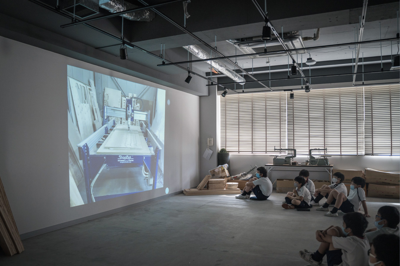 校舎の一角にある「VIVISTOP NITOBE」というものづくりスペースで、子ども達が自分達で使うイスをつくりました。
